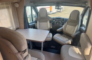 Een prima gelegenheid om gezellig te eten of nieuwe plannen te maken wordt gevormd door de halve treinzit. De middenkeuken, waar de camper over beschikt, is onder meer voorzien van een 3-pits kooktoestel, spoelbak en kraan. De 13 liter boiler, die in de camper is ingebouwd, voorziet u snel van warm water. Om uw etenswaren op te bergen is er een koelkast (106 liter) met vriescompartiment ingebouwd.