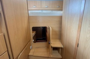 De ruime toiletruimte is voorzien van een ingebouwd Thedford cassettetoilet en is voorzien van een separate doucheruimte.