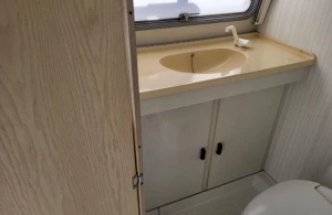 In de comfortabele badkamer van deze caravan vindt u behalve een wastafel ook een ingebouwd cassettetoilet.