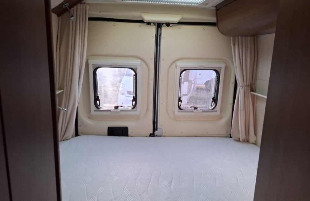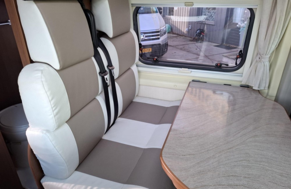 U kunt in deze camper genieten van een uitstekende nachtrust dankzij de lattenbodems en de comfortabele schuimmatrassen op de bedden. U kunt zich heerlijk opfrissen bij de wastafel in de badkamer. Daar is ook een cassettetoilet ingebouwd.