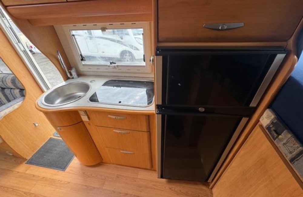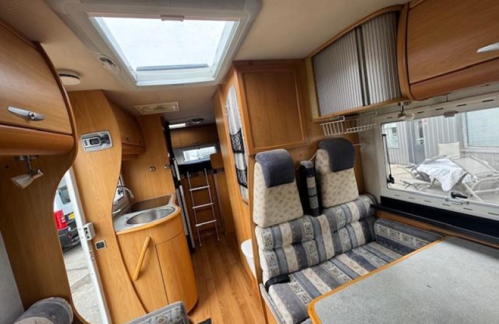 Geniet van uw vakantie en ga eropuit met deze Chausson Odyssee, gebouwd in 2005. Deze kampeerwagen heeft een maximaal gewicht van 3500 kg en heeft een vast 2-persoons bed (eventueel is ook de zitgroep eenvoudig om te vormen tot een 2-persoonsbed voor eventueel 2 extra slaapplaatsen.