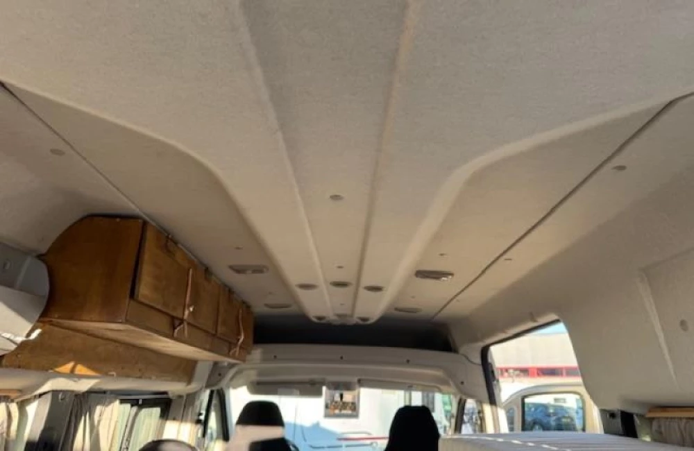 In de camper vindt u onder meer een ruim tweepersoons bed dat in de lengte is geplaatst.