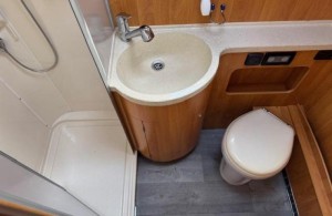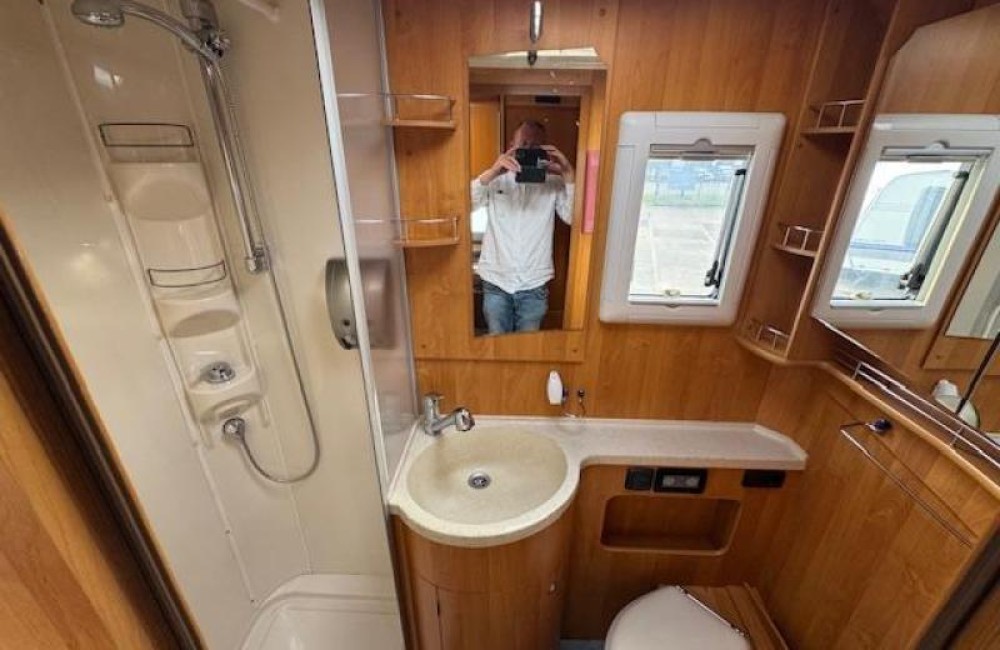 De camper is uitgerust met een Frans bed, een in de lengte geplaatst tweepersoons bed. Om u van een welverdiende nachtrust te laten genieten, hebben de bedden niet alleen lattenbodems maar ook een nieuw koudschuimmatras. In de badkamer vindt u een wastafel om u op te frissen, alsmede een ingebouwd cassettetoilet. Naast het slaapgedeelte bevindt zich ook de douchegelegenheid.