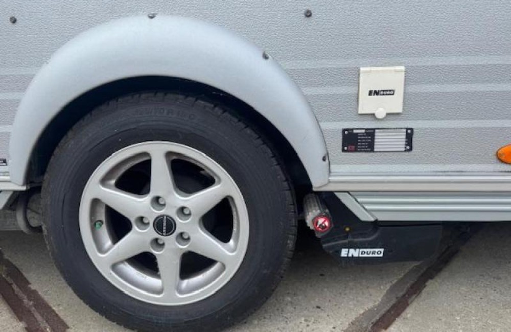 De stabilisatorkoppeling zorgt voor een merkbare verbetering van het weggedrag van deze caravan.