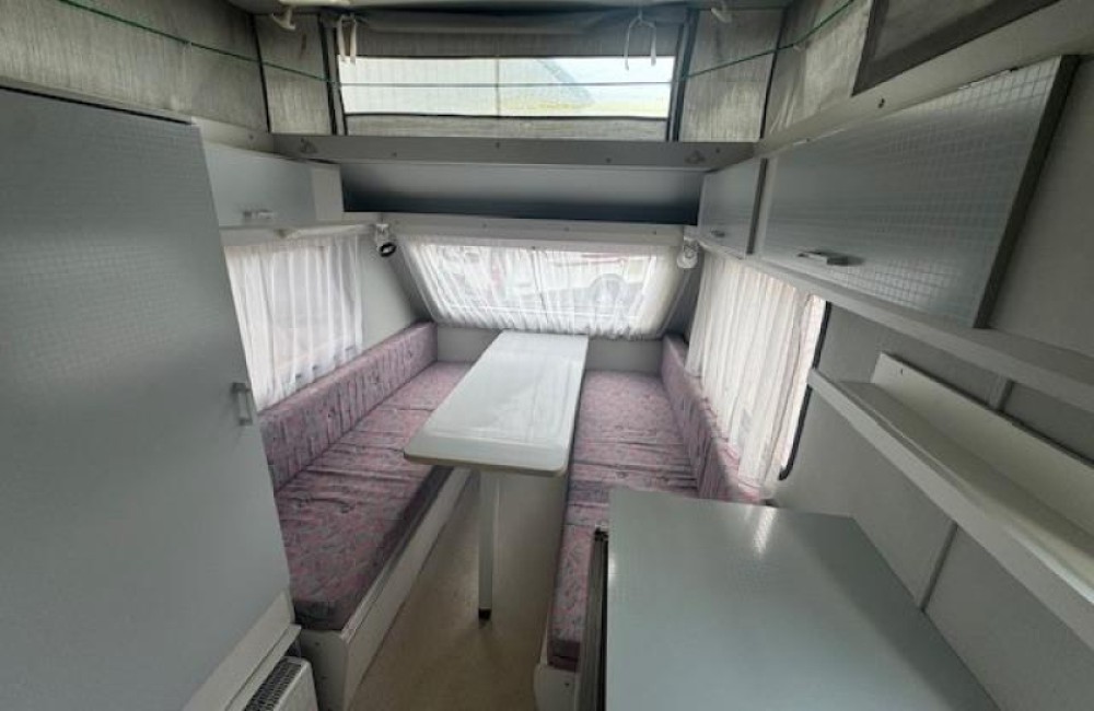 Het betreft hier een harde, vochtvrije, rookvrije en keurige caravan van 1991. Het doek van het hefdak is keurig. De carroserie is hard en strak met een zeer licht glooing aan de achterzijde, zie de foto's.